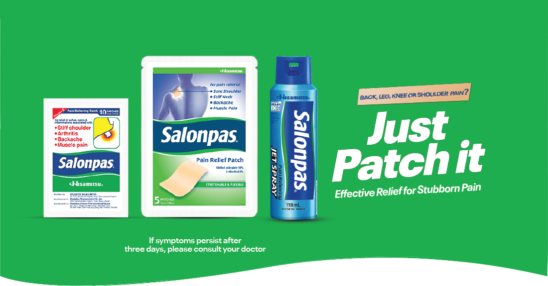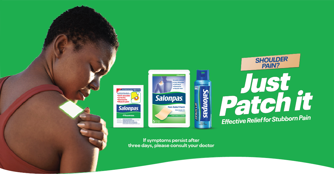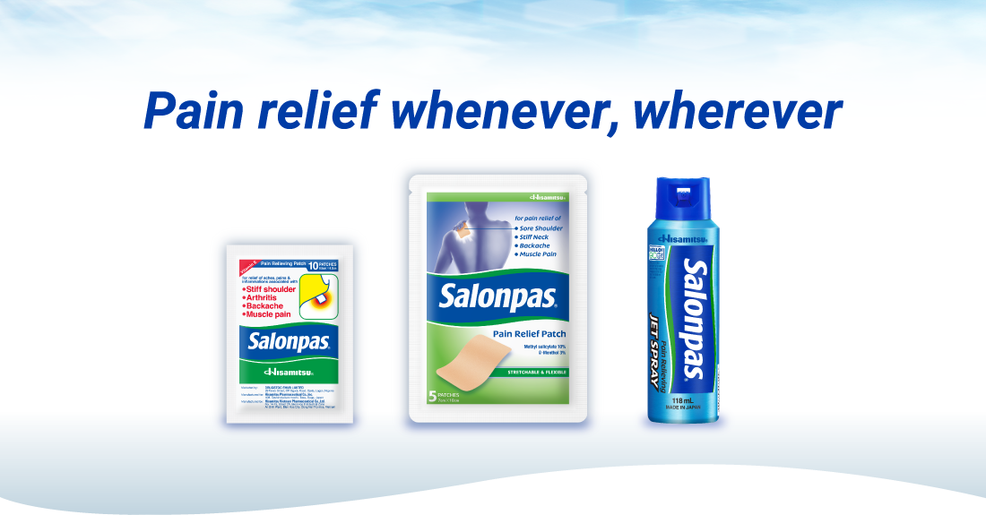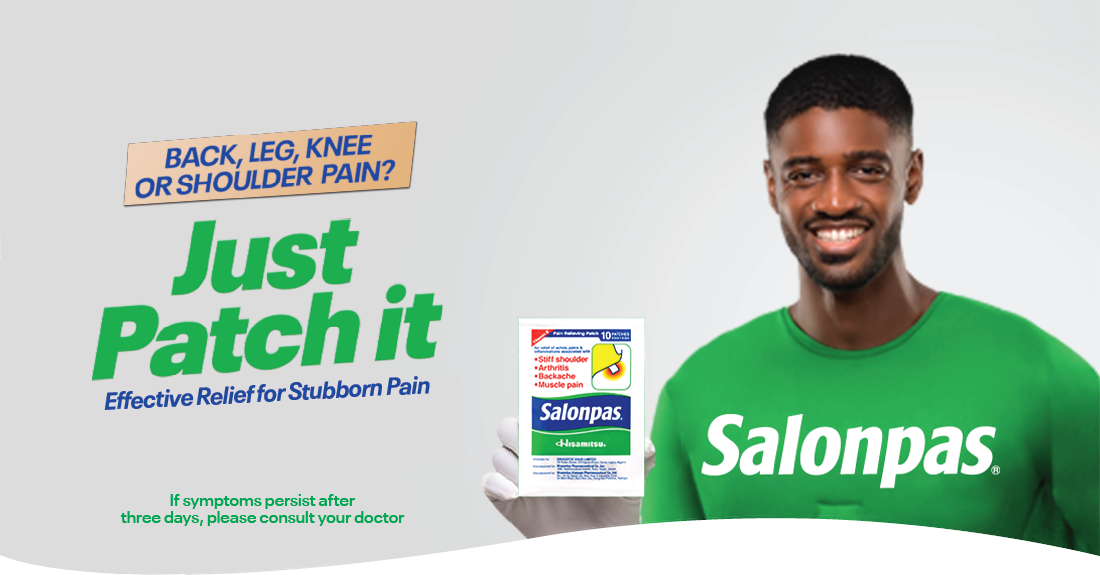 Salonpas® products come in patches and JET SPRAY. Learn various ways to apply Salonpas® patches to treat pain. Find closest stores where you can purchase Salonpas®! 05/2024 Salonpas® is Now Available for Sale in Nigeria – Ceremony Held to Celebrate Launch. 05/2024 Salonpas® Named the World’s No. 1 OTC Topical Analgesic Patch Brand for the Eighth Consecutive Year